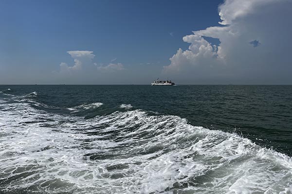 在清晨七点半的晨光中,满载欢声笑语的大巴,如同一艘陆地航船,载着我们驶向那片心心念念的蔚蓝。一路上的谈天说地,让四个小时的车程变得轻快。当咸腥的海风透过车窗拂面而来,我们便知,目的地近了。沈家湾码头人头攒动,我们的兴奋之情也随着海浪轻轻荡漾。登上游轮,劈波斩浪,船舱内是同事们不绝于耳的惊叹与快门声。那一刻,所有工作的疲惫仿佛都被海风吹散,抛在了身后。