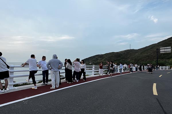 踏上嵊泗本岛,入住稍作休整后,我们便迫不及待地投入它的怀抱。东海渔村的古朴与左岸公路的浪漫交织成一幅动人的画卷。沿着海岸线漫步,看夕阳将海面染成金黄,平日里在办公室严谨专注的同事们,此刻都是闲庭信步的旅人,笑容格外灿烂。