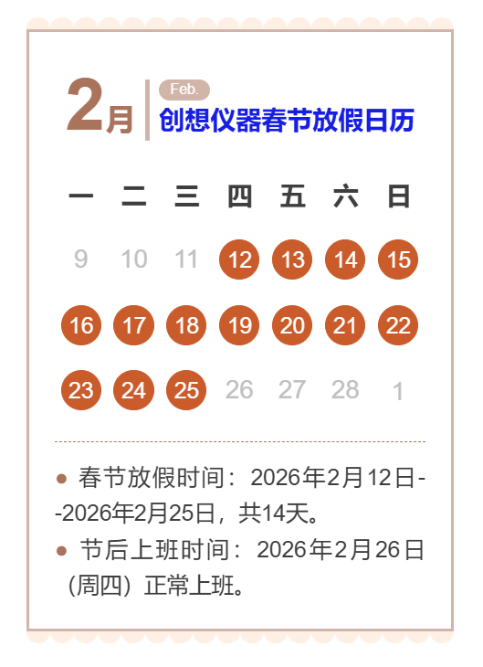 2026年无锡创想分析仪器有限公司春节放假通知: