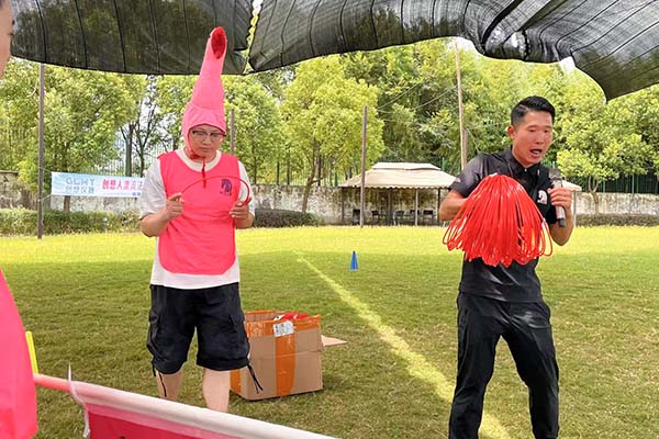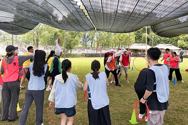 上午,团建活动在轻松愉悦的氛围中拉开帷幕。现场设置了多线拔河套圈、套大鹅、大脚接力等丰富多彩的趣味项目。多向拔河,各队队员齐心协力、奋勇拼搏,口号声、加油声此起彼伏,充分展现了团队的凝聚力和战斗力;套“大鹅”,大家全神贯注,瞄准目标,每一次成功套中都引来阵阵欢呼;大脚接力则考验着队员之间的默契与协作,大家你追我赶,现场气氛热烈非凡。这些活动不仅让同事们在紧张的工作之余得到了放松,更增进了彼此之间的了解与信任,为今后的工作协作奠定了良好的基础。